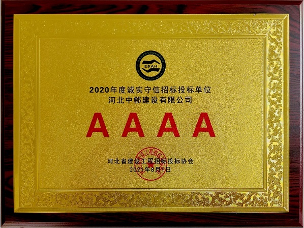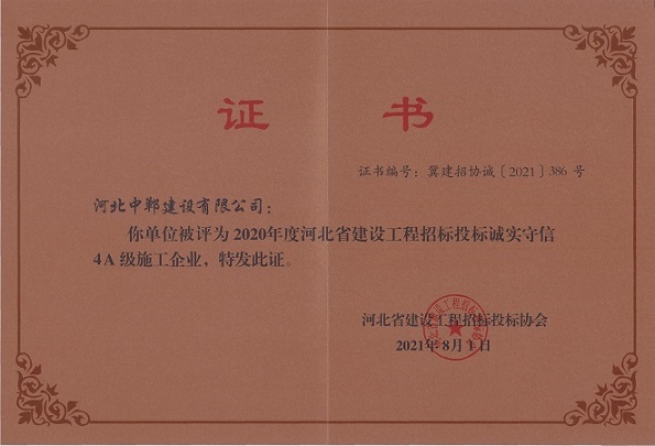 河北中郸建设有限公司荣获2020年度诚实守信招投标单位!